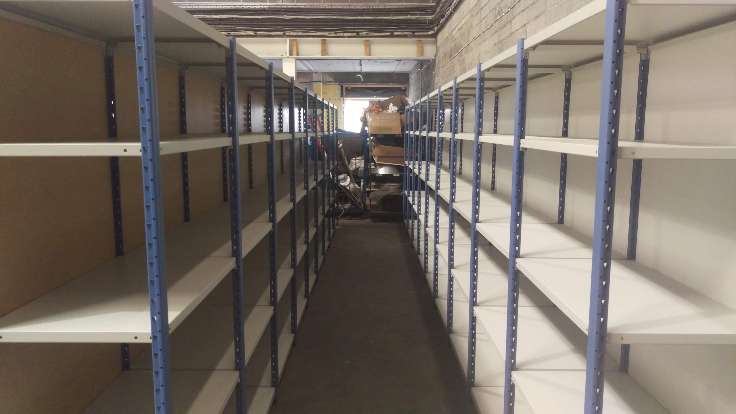 Kit bay/Modular shelving is very popular with archive file storage, each bay can store ten average archive boxes and two continuous bays can store twenty-five. It is also popular in warehouses with continuous picking of smaller fast-moving stock. The bays are brand new and stand 2000 mm high 970 mm wide and 500mm deep.